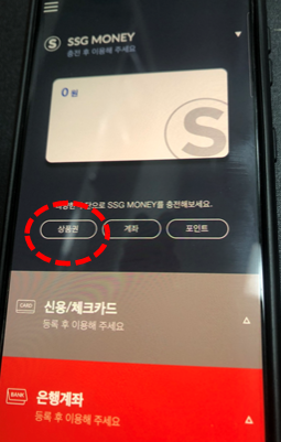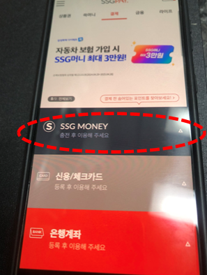 - SSG PAY 앱 실행 후, 'SSG MONEY'를 선택