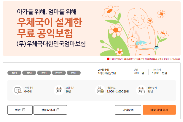 - 보험상품명: 우체국 대한민국 엄마보험