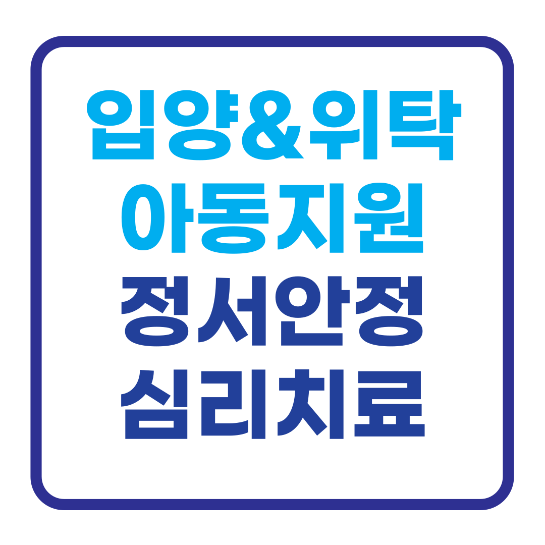 - 복지로: '입양아동 심리치료 지원' 또는 '가정위탁아동 심리치료 지원'을 검색해 보세요!